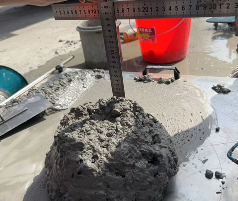 إن البلاطة الأساسية القابلة للمضغ C40 القابلة للمضغ في المكان تتطلب خرسانة بـ "ثلاثة مستويات منخفضة وواحد عالي": نسبة منخفضة من الماء إلى الرابط ، هبوط منخفض (way-way-way) ، محتوى هوائي منخفض (من من من من من من ؟ ؟) ، وقوة عالية (مع قوة انثناء بالآلام والكروب الذهنية ومعامل مرن 30 جيجابايت). بالإضافة إلى ذلك ، يجب أن يحافظ البناء على الركود لمدة ساعة. يتمثل التحدي في أن الحفاظ على الهبوط لمدة ساعات مع ضمان استمرار ضخ الخرسانة يتطلب الكثير من المتطلبات ، مما يتطلب من الخرسانة الحفاظ على التماسك والترابط بشكل ممتاز.